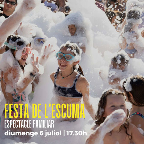 17.30h FESTA DE L'ESCUMA Tornen les muntanyes de bombolles, música a tope i diversió assegurada! Vine a la nostra festa de l’escuma més refrescant!